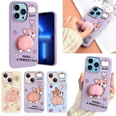 Мультфильм Симпатичный 3D Расстегивание Мягкий Персик Корги Нот Чехол для телефона для iPhone 13 12